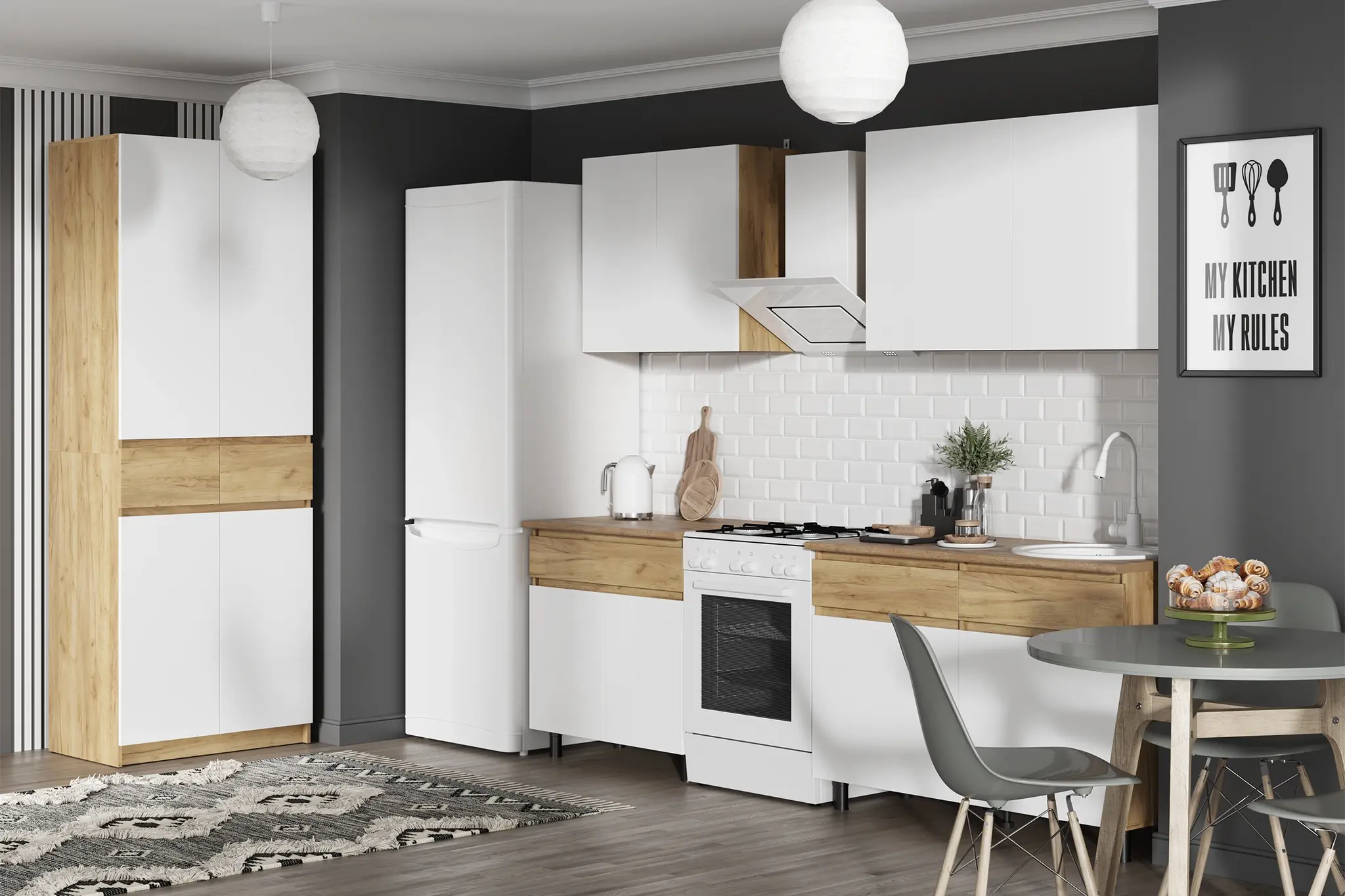 Высота нижних модулей указана с учетом столешницы.